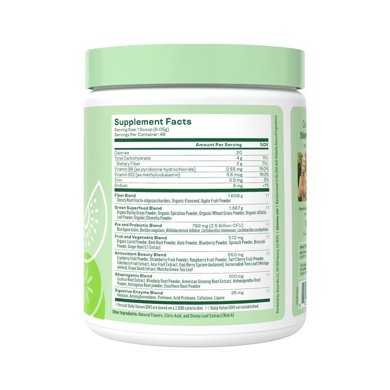 This user-friendly supplement is packed with organic fruits and vegetables, all geared towards naturally enhancing your energy levels and boosting overall wellness. Bloom Greens is Certified Organic, Gluten-Free, Dairy-Free, and Soy-Free. It contains no added sugar and is completely plant-based, making it suitable for a range of dietary preferences.