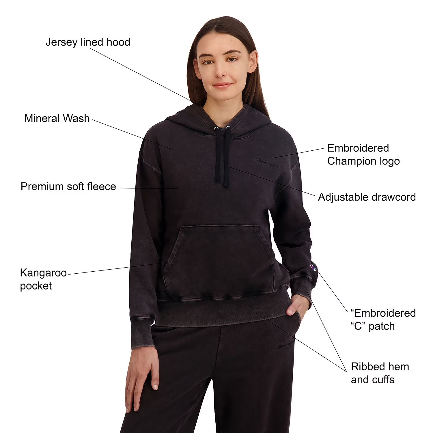 Whether you're lounging at home, heading to the gym, or layering up for a casual day out, this pullover hoodie offers a relaxed fit that’s designed to move with you. It features tonal direct embroidery at the chest and Champion’s signature “C” patch on the left sleeve for a subtle, elevated touch.