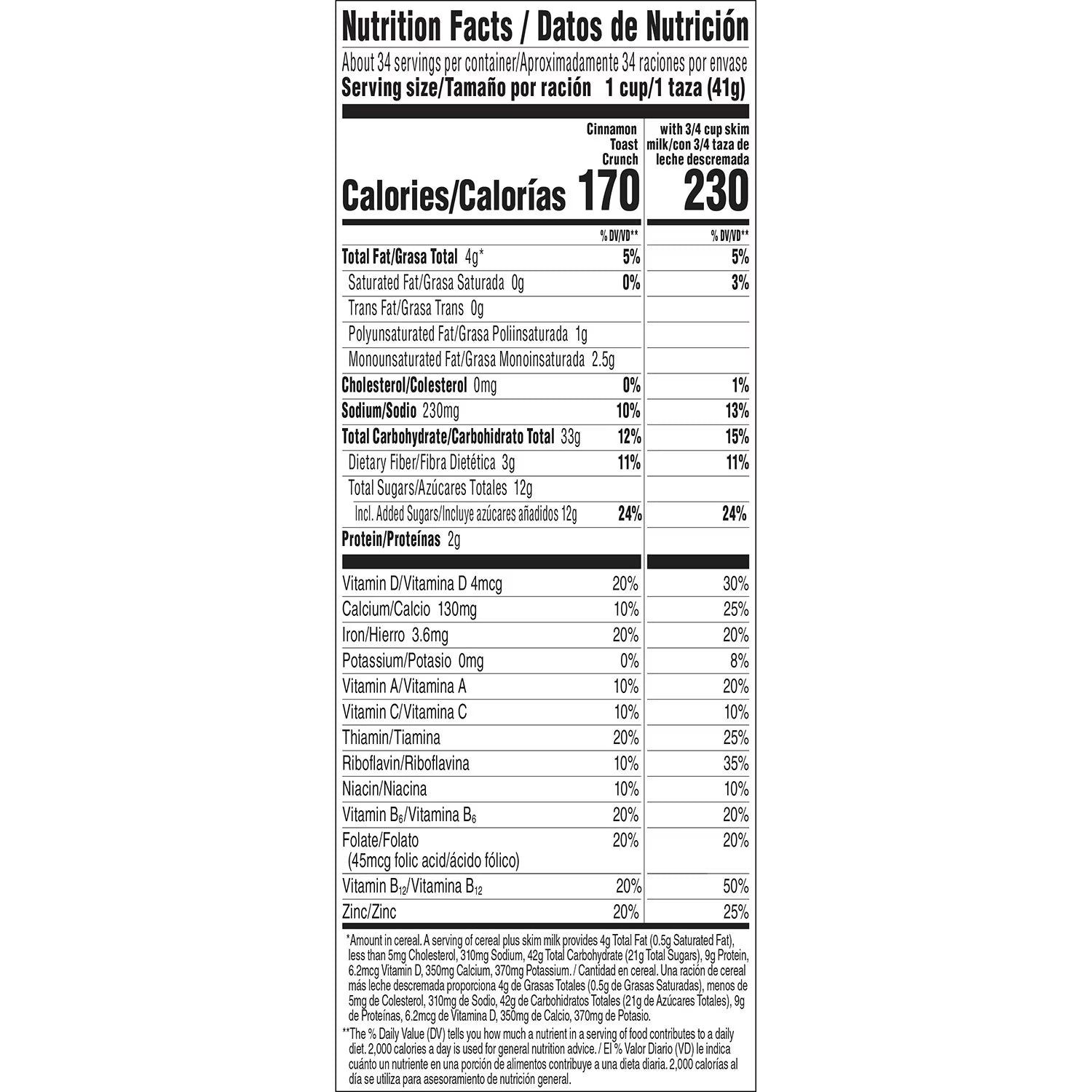 Cinnamon Toast Crunch provides 11 essential vitamins and minerals. Cinnamon Toast Crunch contains vitamins A, B, C and D as well as iron, calcium, and zinc. It also contains important dietary fiber, which helps keep the hunger pangs away. Other nutrients include protein, carbohydrates, zinc, copper and phosphorus. All that and the irresistible cinnamon and sugar taste kids love to make it a great way to start the day.