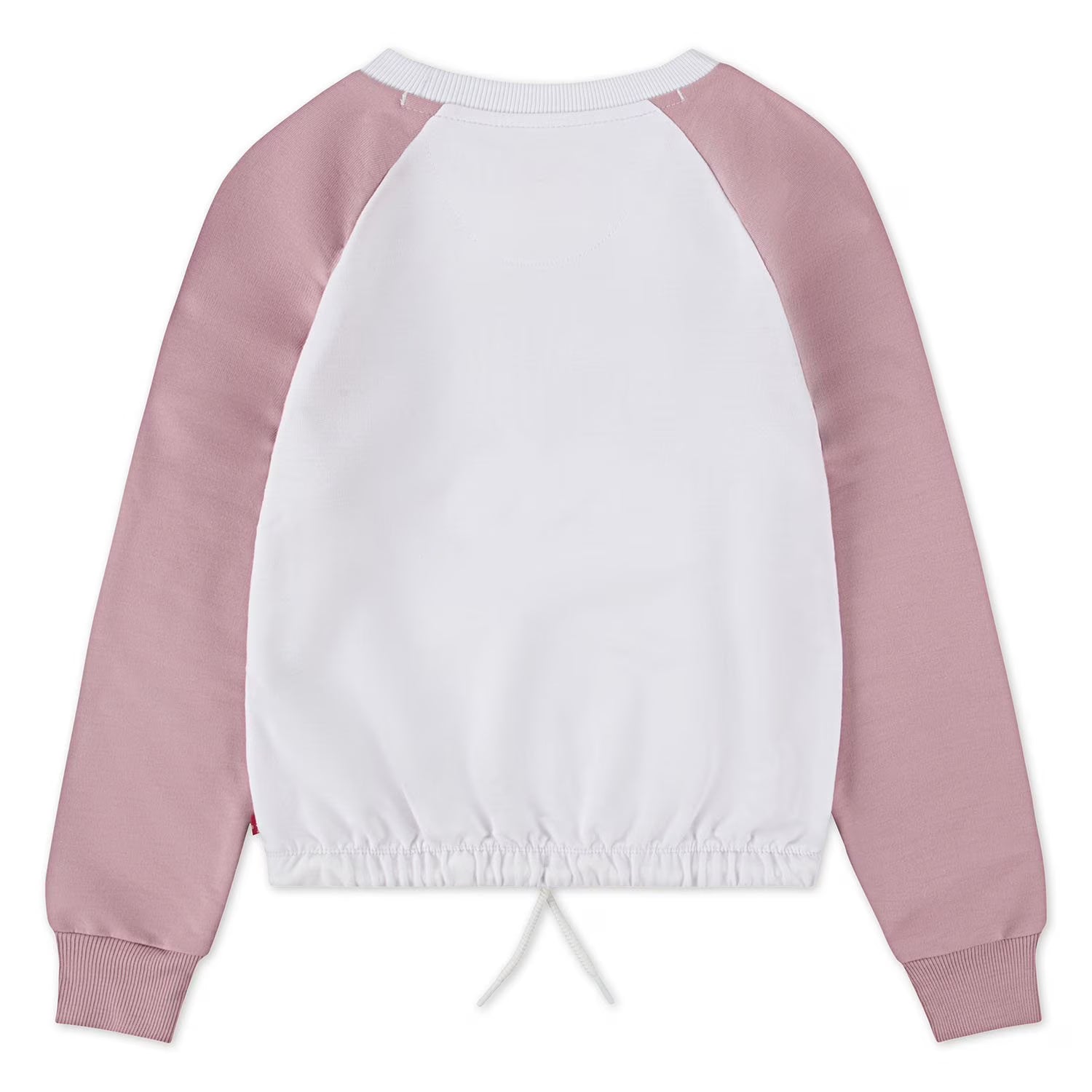 This top is designed with thoughtful details like a ribbed crew neck that maintains its shape through multiple washes, ensuring lasting durability. The drawcord hem allows for a customizable fit, letting girls adjust the style and comfort to their preference throughout the day.