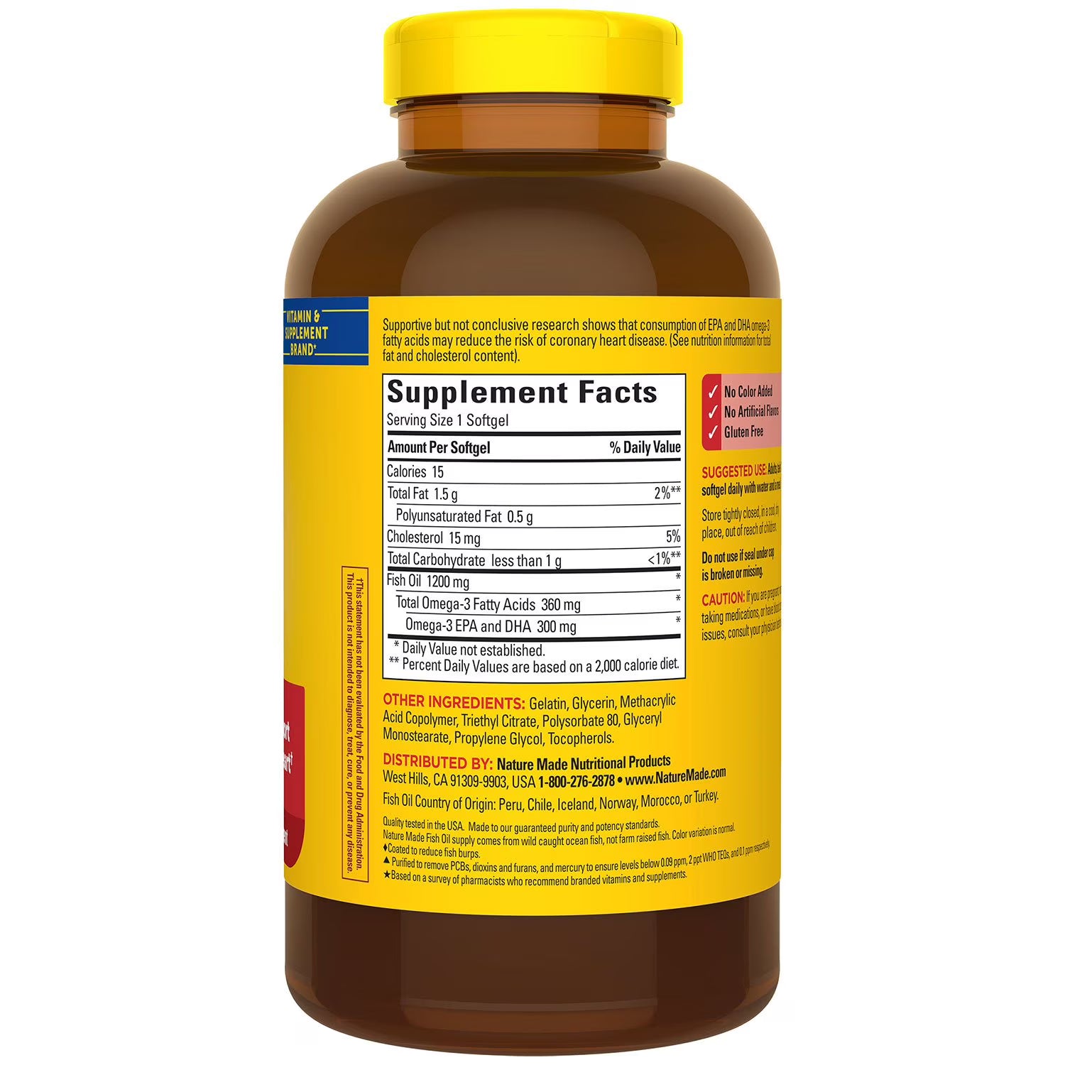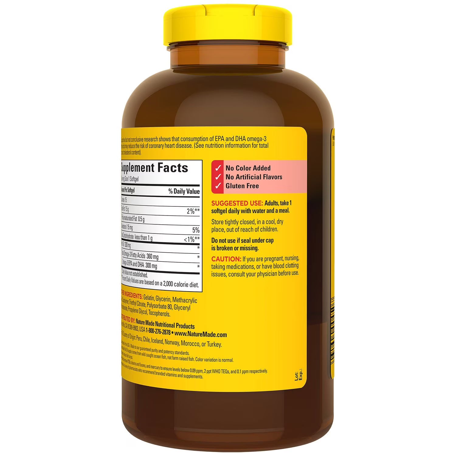 These gluten-free softgels are sourced from premium quality ingredients, free from artificial colors and flavors. The fish oil is extracted from wild-caught ocean fish, not farm-raised, ensuring a more natural and healthier product. Moreover, the Nature Made fish oil supplements are purified to remove mercury, PCBs, dioxins, and furans, ensuring safety and purity.