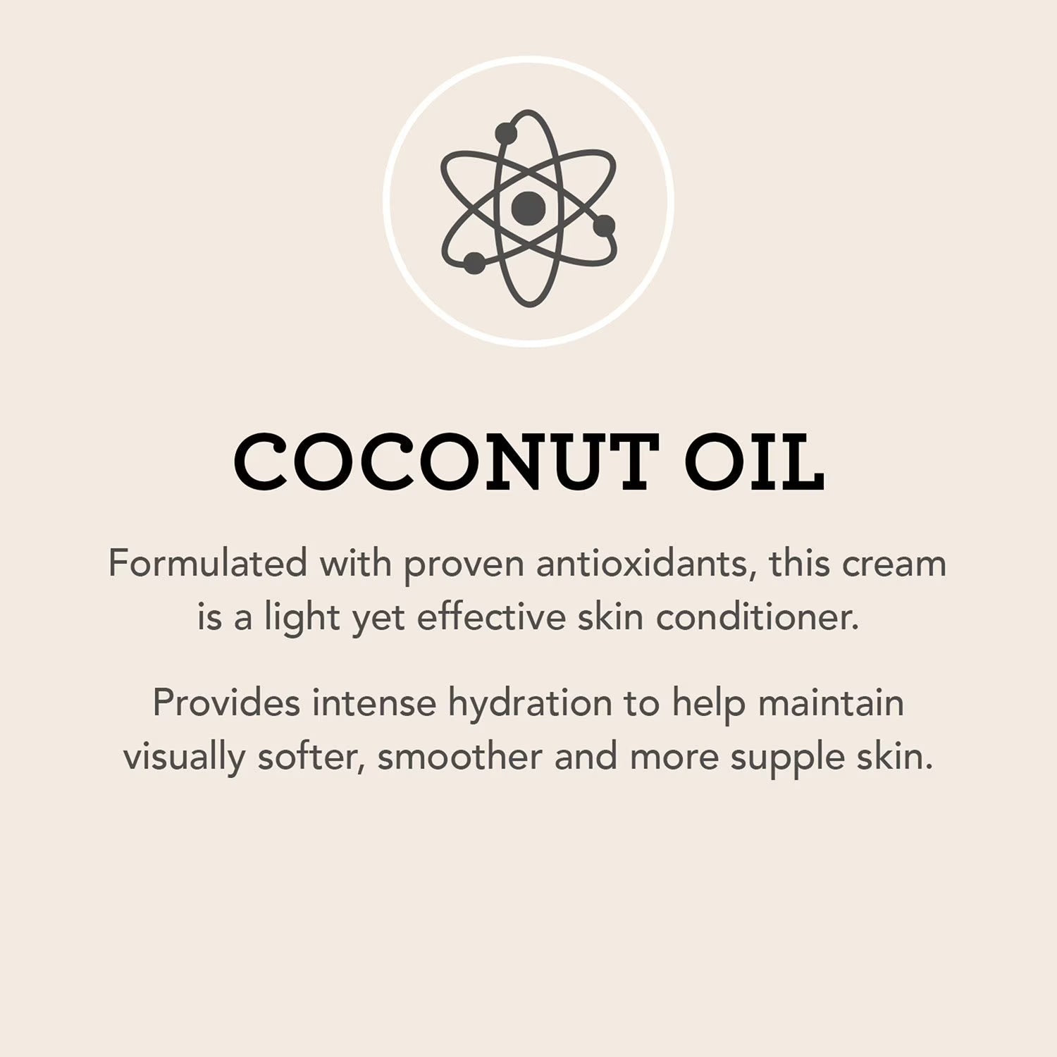 - Coconut-scented cream formulated with vitamins A, C, & E and proven antioxidants