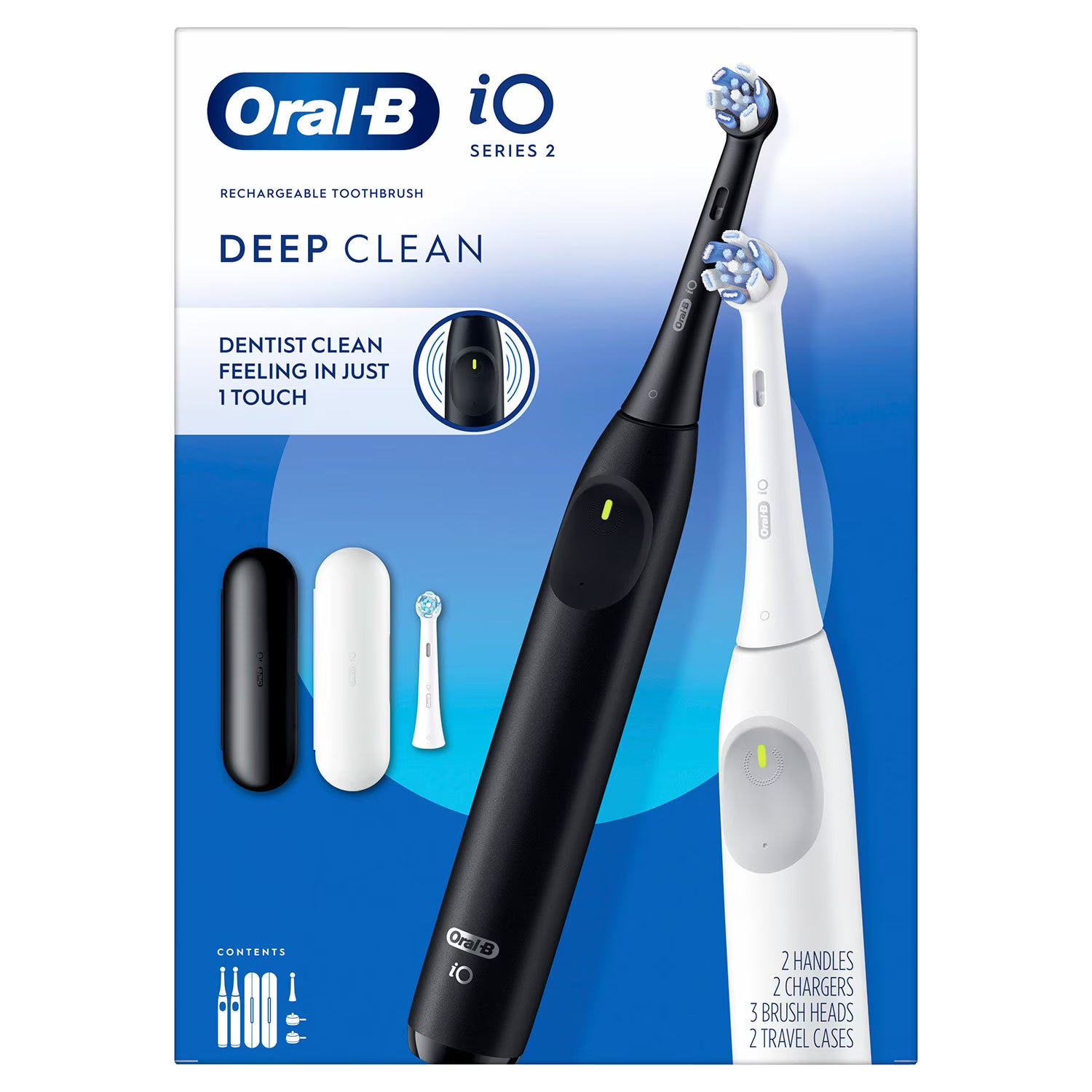 Oral-B iO Series 2 Electric Toothbrush, Pure White & Night Black, 2pk., 3 Brush Heads