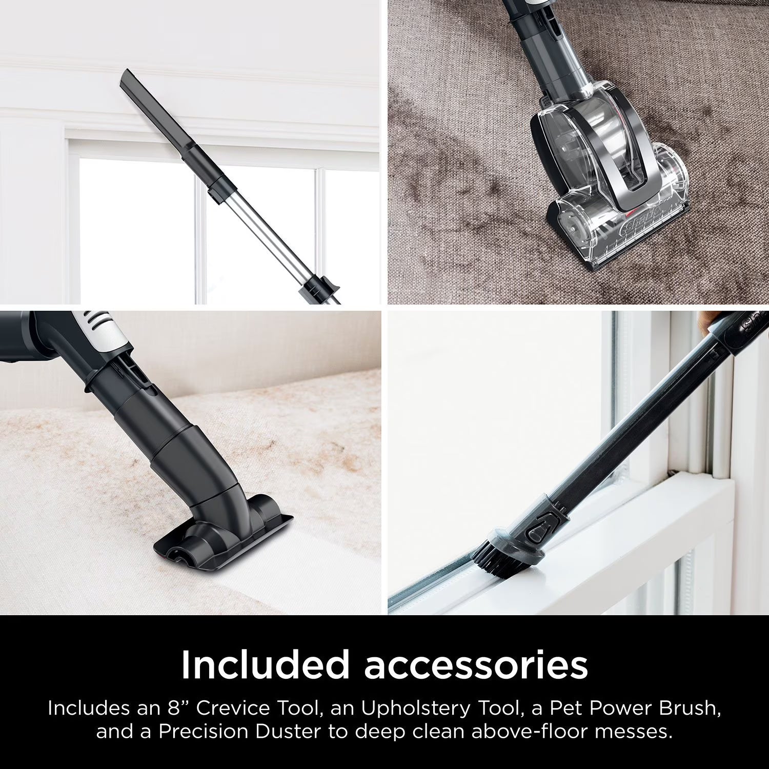 A Crevice Tool, Upholstery Tool, Pet Power Brush, and Precision Duster help tackle hard-to-reach spaces and stubborn pet hair.