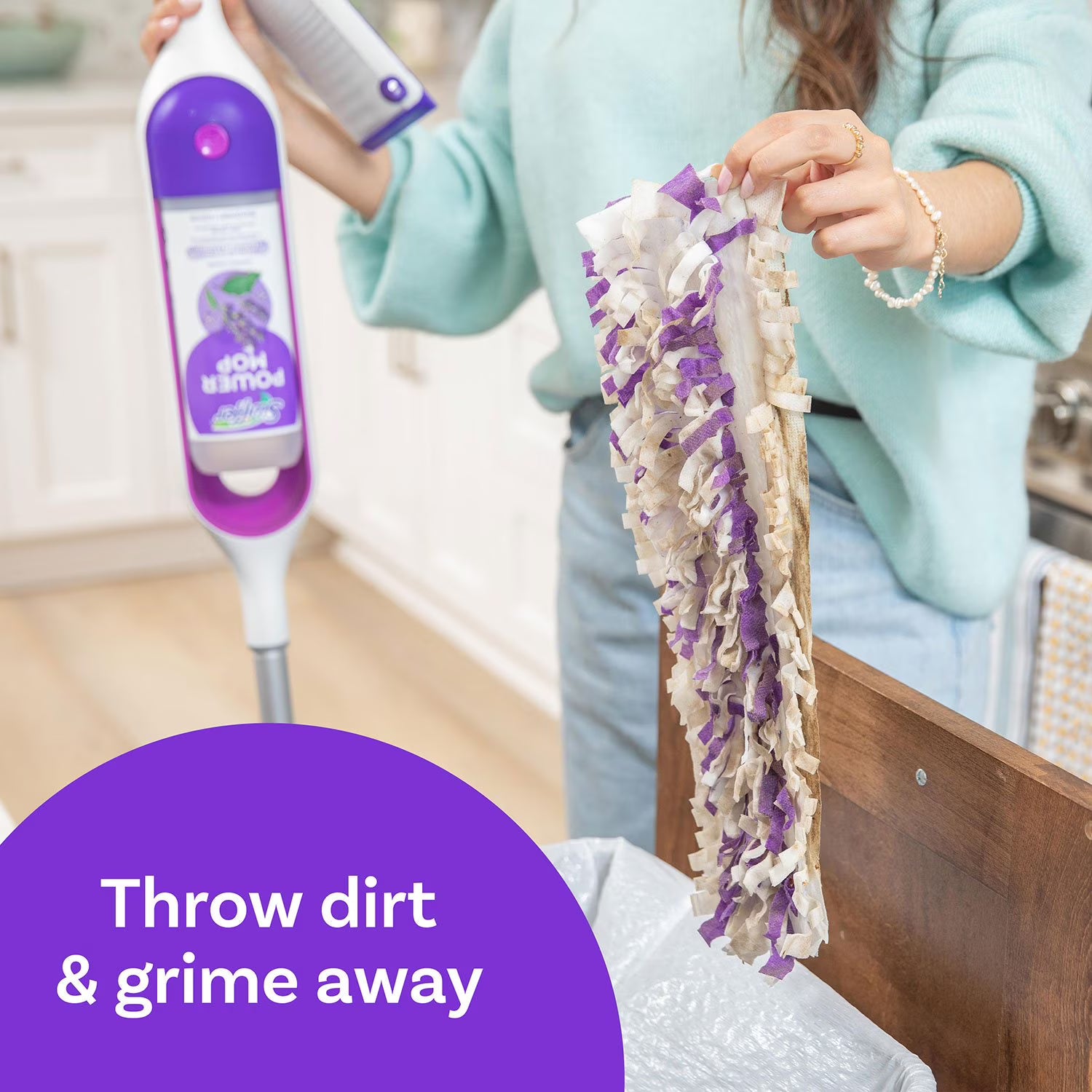 One PowerMop pad cleans up to 4X more floor! The all-in-one mopping system is also great for cleaning baseboards and lays flat so you can easily clean under furniture. Enjoy the ease of disposable mop pads – just throw dirt and grime away and start with a clean, fresh pad every time. PowerMop is safe on wood and all finished floors§. Buy Swiffer worry-free. If you’re not completely satisfied, check out our money-back guarantee.