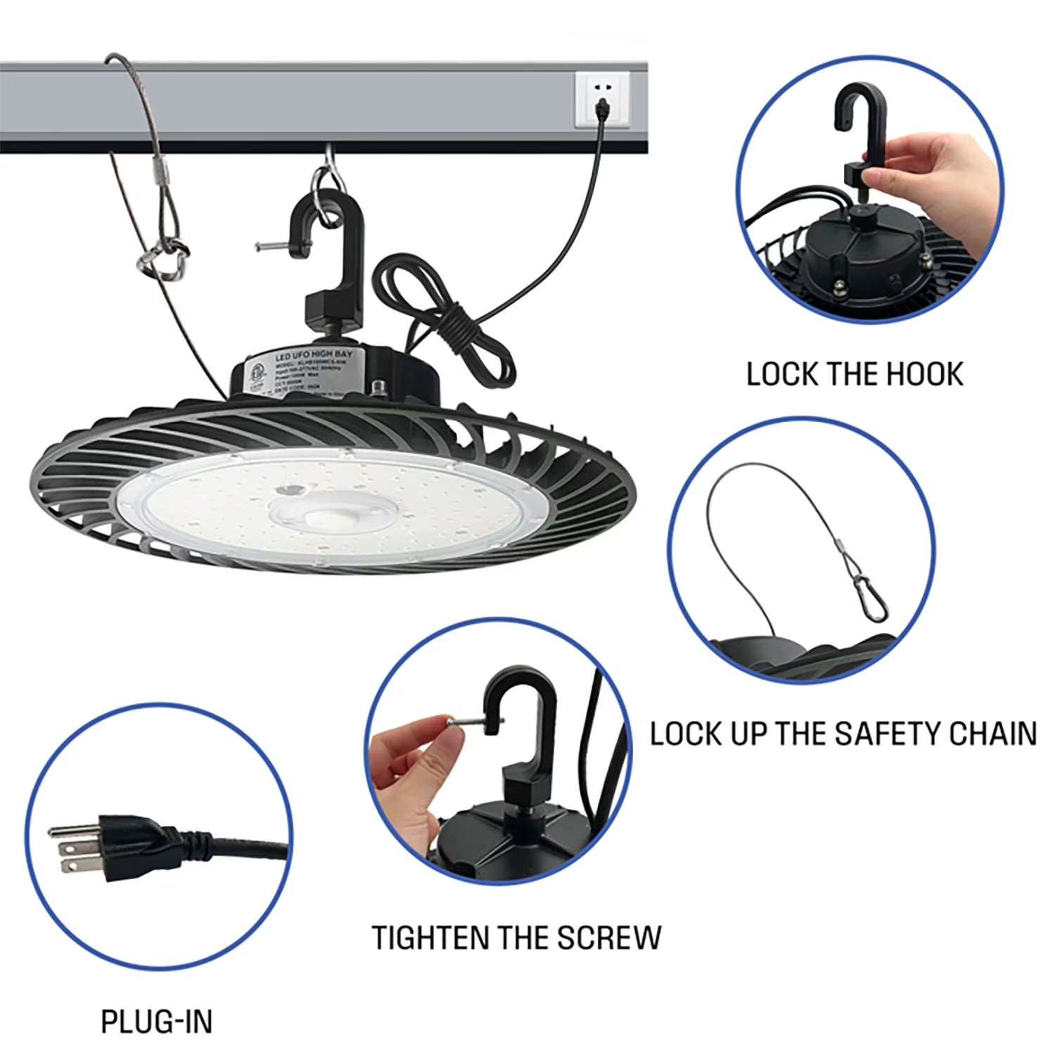 The Westinghouse UFO high bay light casts vibrant, wide-area illumination for optimal visibility and allows you to customize your lighting to match every mood and activity across various settings. You can choose to use the dimming capabilities or let the light shine at its brightest 10,000 lumens at all times. The housing is constructed of durable diecast aluminum that is lightweight for easy transport, and the LEDs are rated for dust and waterproof protection, allowing the light to withstand different environments. You can easily install this light with the included suspension hook and chain and have the option to hardwire or use the 3-prong plug. The Westinghouse 10,000 Lumen High Bay Light offers superior LED lighting for various applications such as warehouses, manufacturing spaces, commercial spaces, gyms, recreation centers, and any small business in need of area lighting.